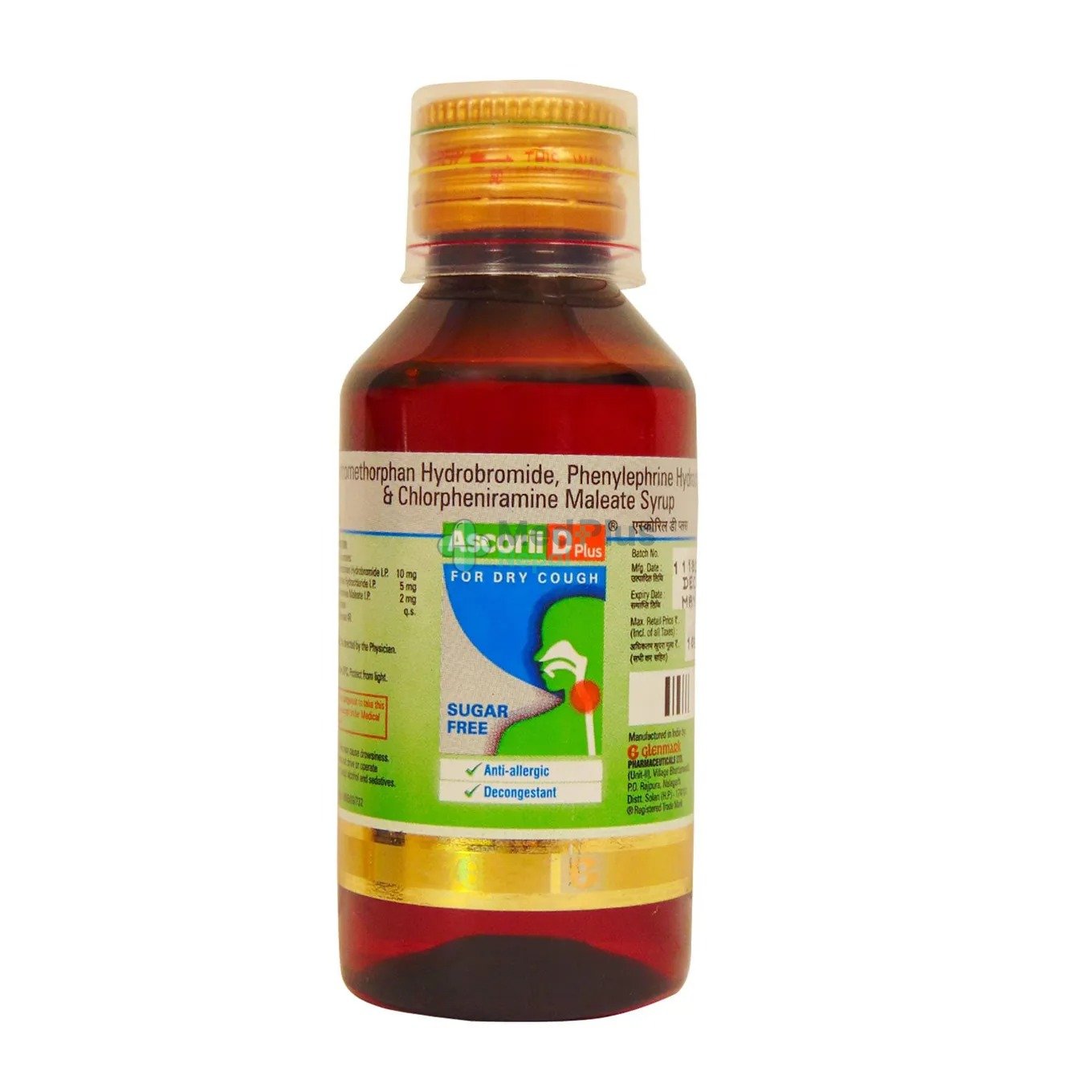 • Ascoril D Plus Syrup Sugar Free is a combination medication designed to relieve symptoms associated with dry coughs and upper respiratory tract conditions.